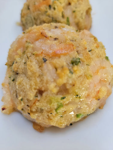 3 oz each and sold as a pair, you will fall in love with these delicious shrimp cakes! Handmade, 70% Shrimp.